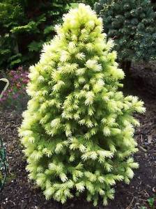 | Picea glauca J W Daisy's White is an attractive pyramid shaped, dwarf White Spruce tree growing to just 1 x 1 metres in 20 years. With needle-like foliage that is mid-green throughout the year |